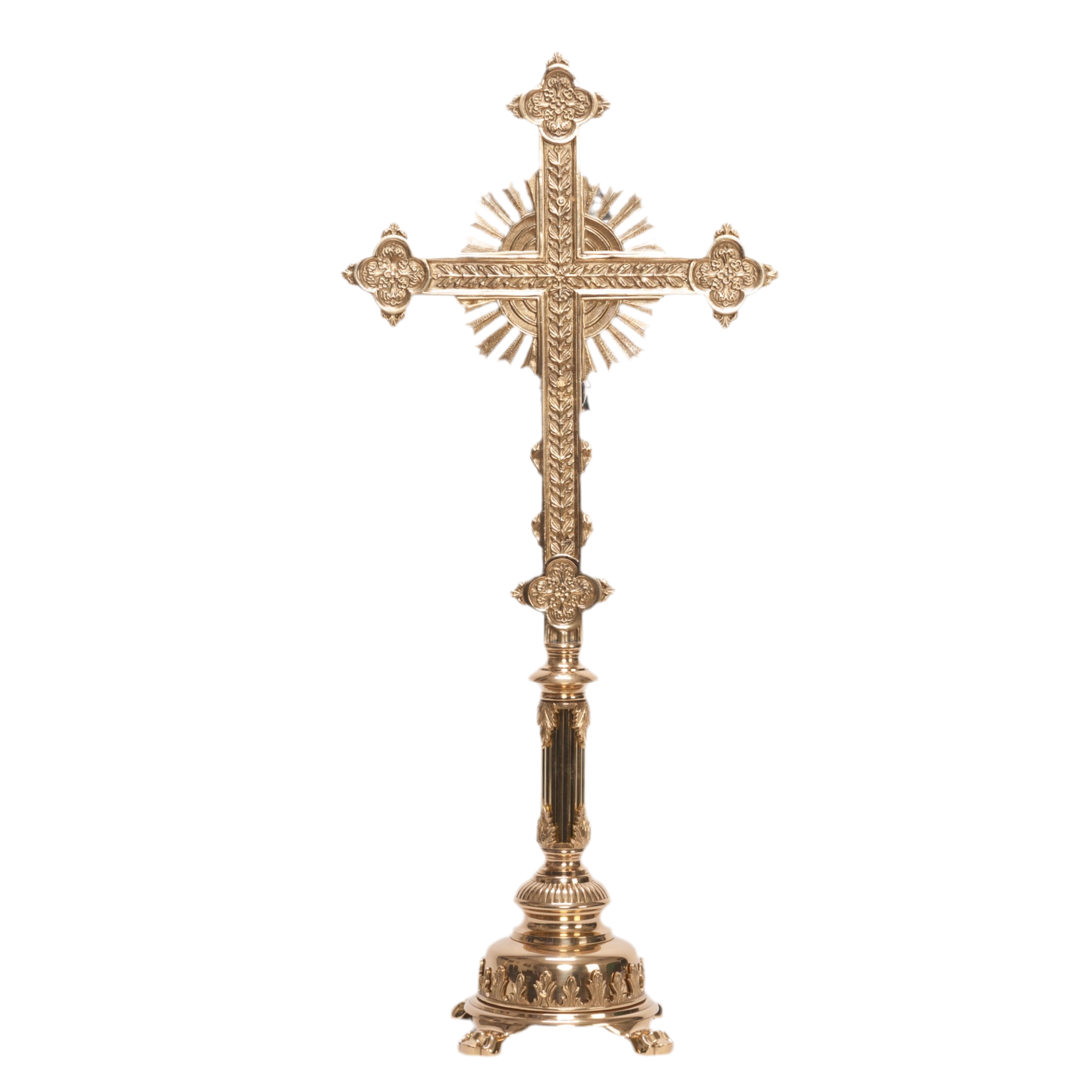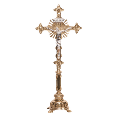 Traditional Fluted Brass Stem Altar Cross with Silver plated Corpus and INRI.