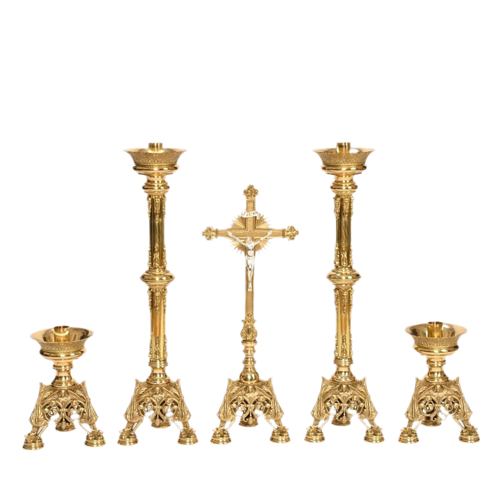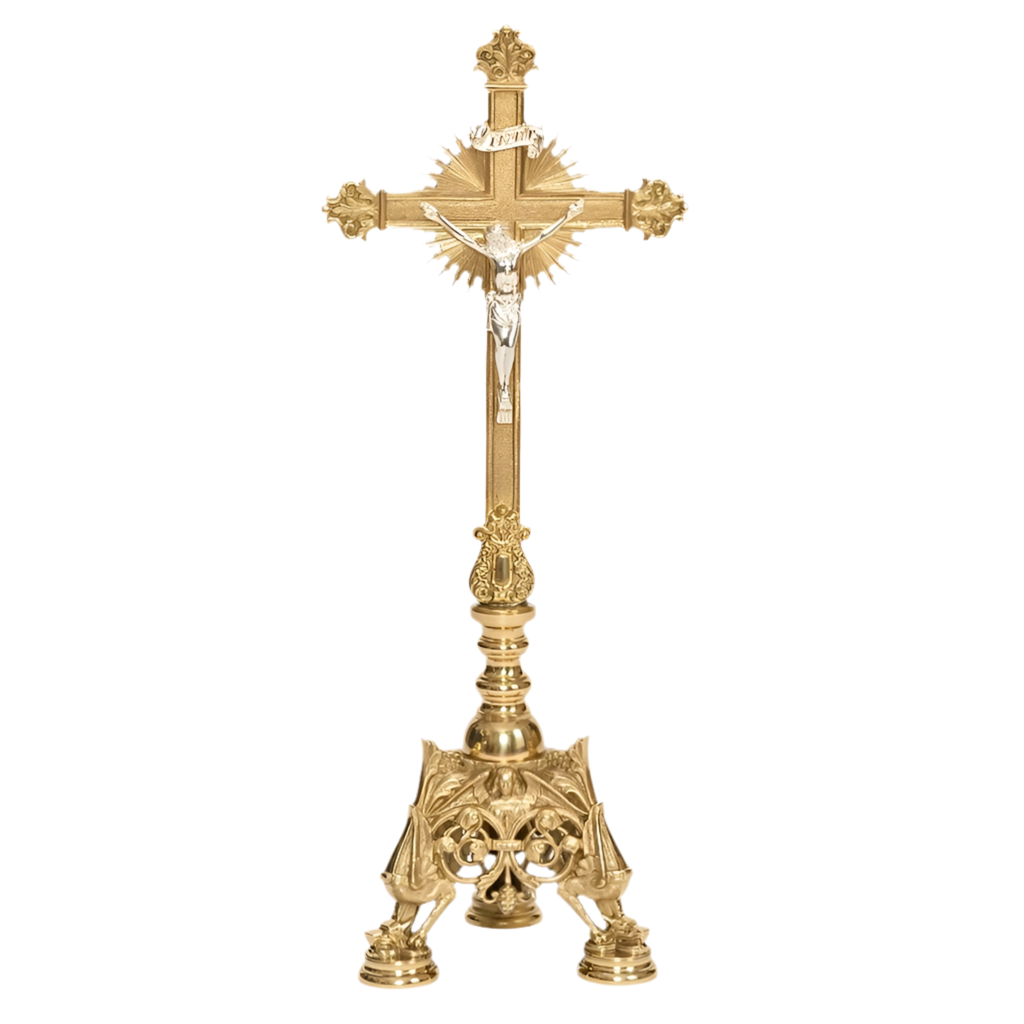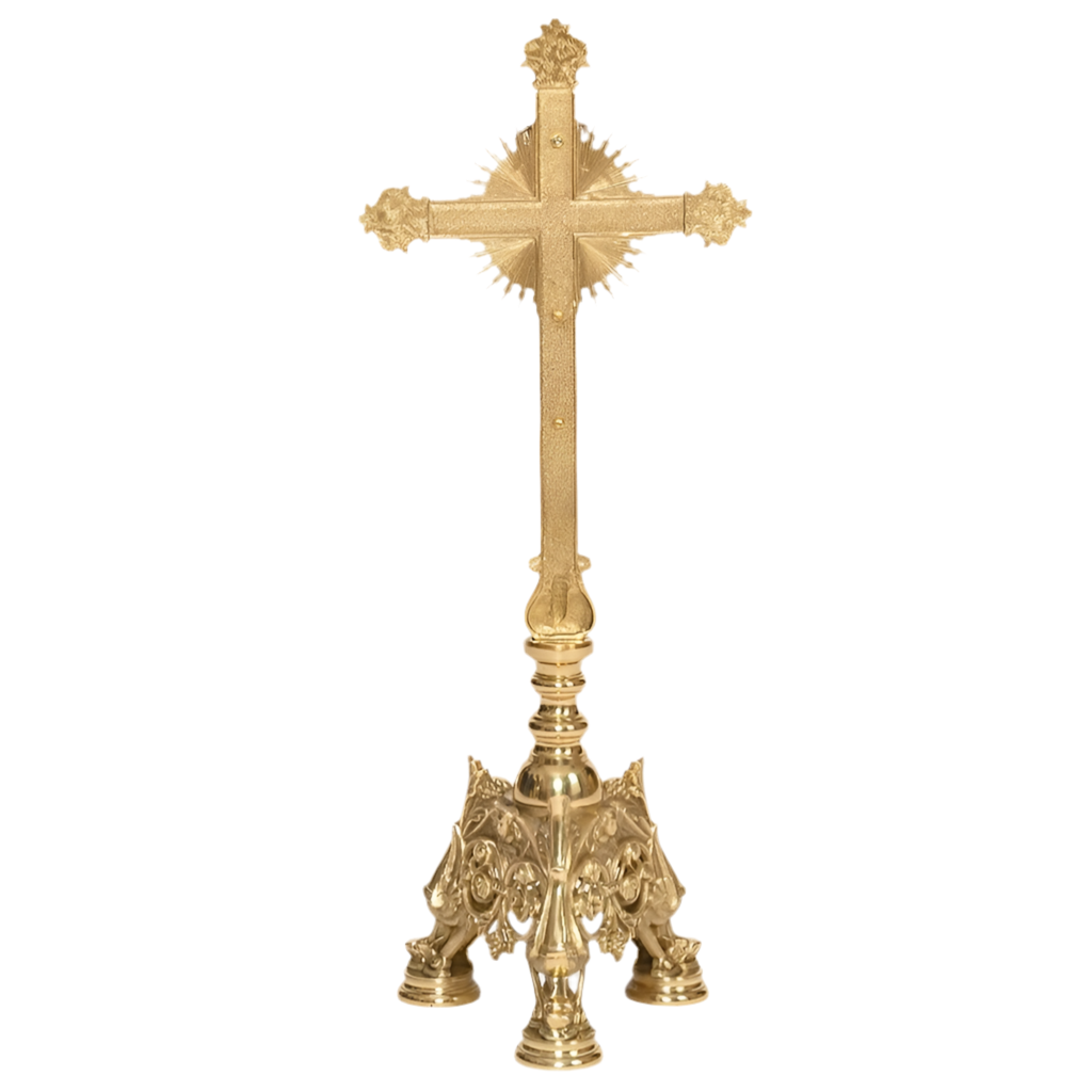 26 1/2" tall, 10 1/4" wide, 8 1/2" triangular base sides, 6" x 4 5/8" corpus.