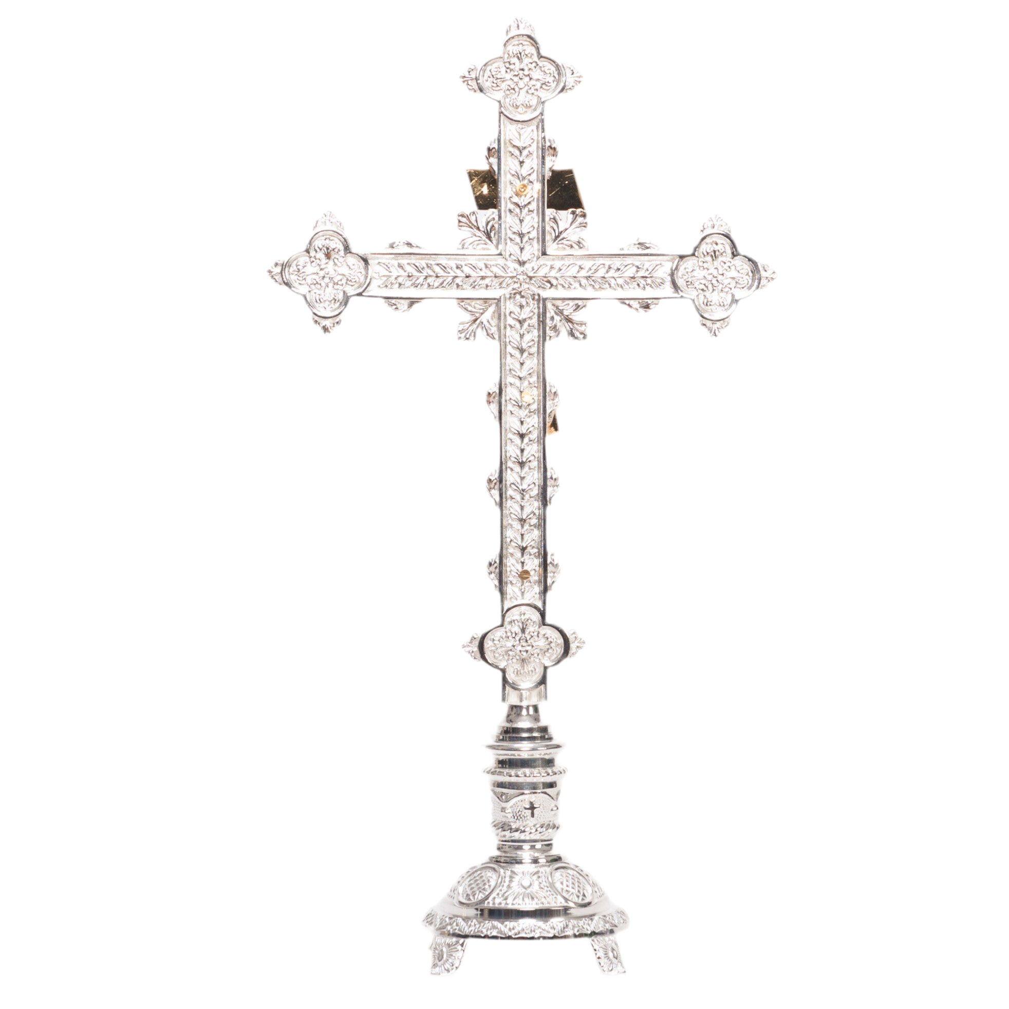 *PLEASE NOTE: THIS ALTAR CROSS IS NO LONGER MADE WITH THE FEET. IT WILL BE EXACTLY LIKE THE BRASS ONE SHOWN. (Search H-98) *Technical Information: