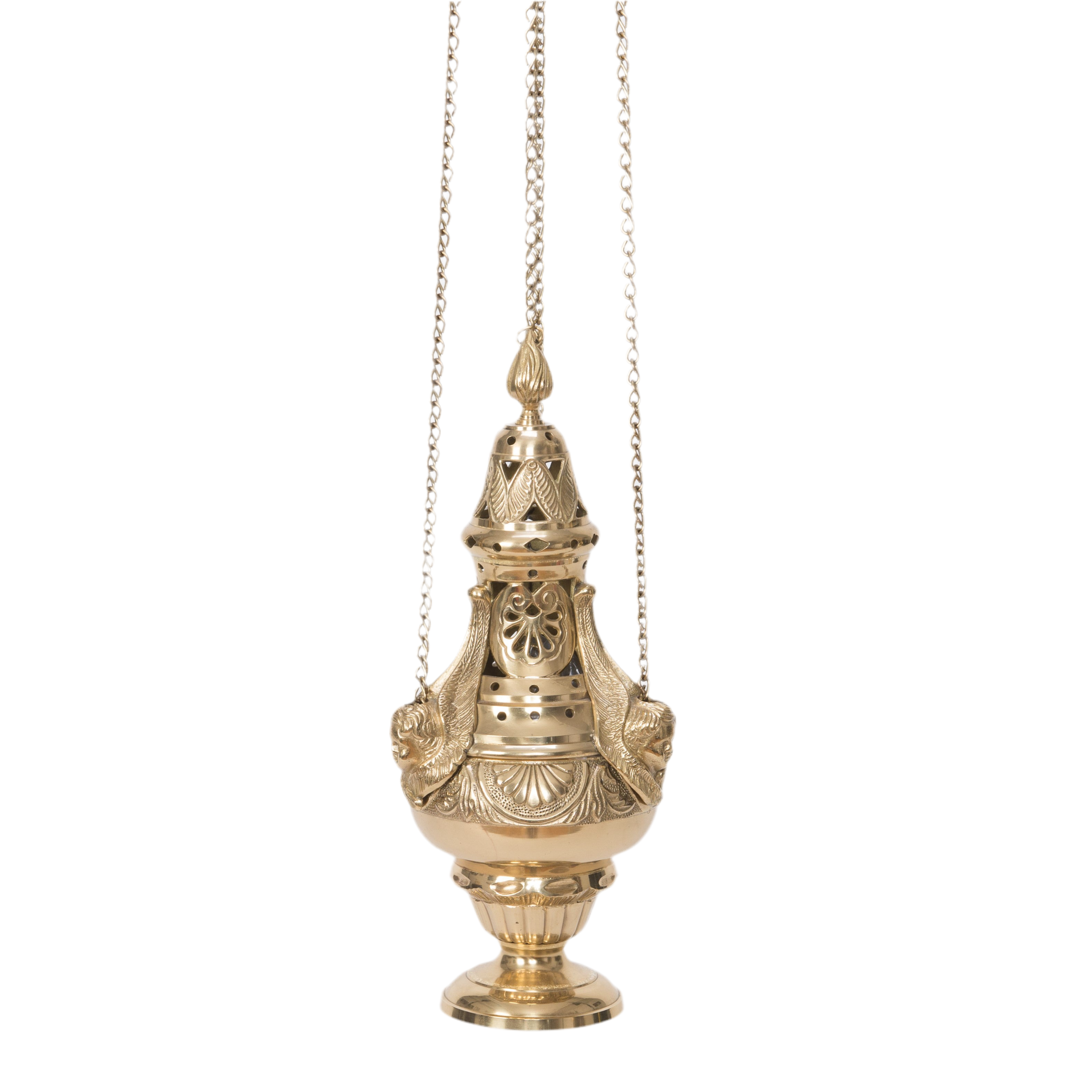 Sizes: 12 1/4" Censer Ht., 45" total hanging Ht., 4 1/2" W, 3 1/4" Base Diameter