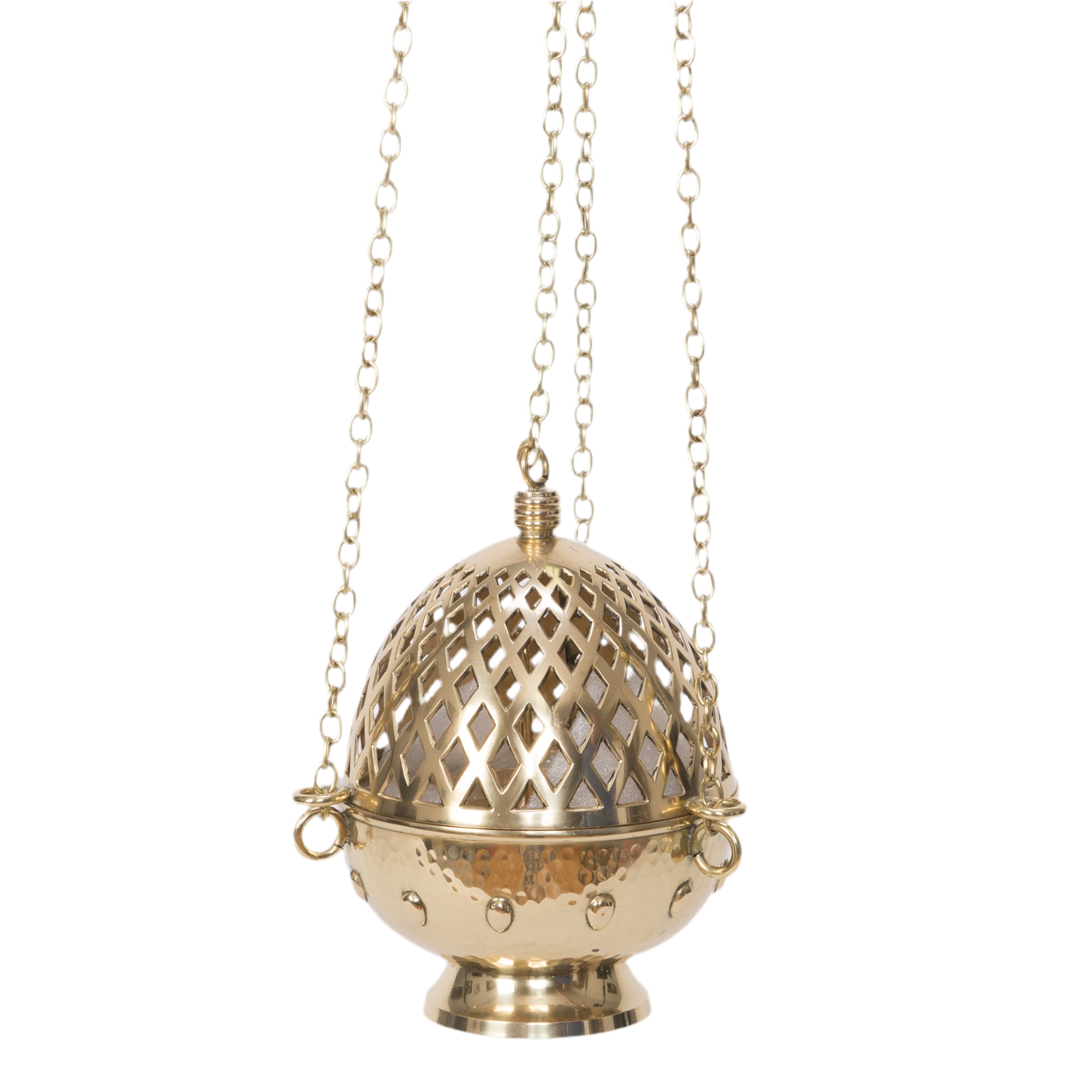 Sizes: 9 1/2" Censer Ht, 42" Total hanging Ht, 6" W, 3 1/2" Base Diameter