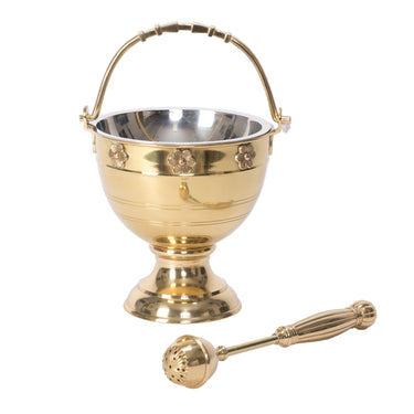 Polished Brass and Lacquered Holy Water Bucket w/ Sprinkler Set