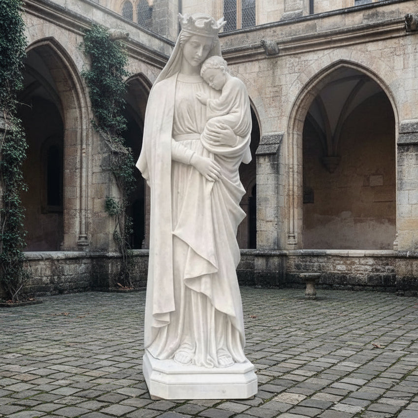 Large Carved Marble Statue of Mary with Child (Seat of Wisdom)