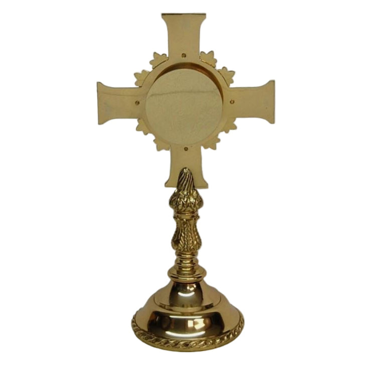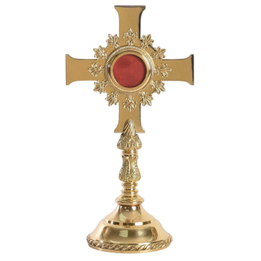 This multi layered cross shaped reliquary is solid brass and polished to a high shine.