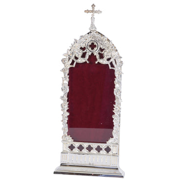 Silver plated full view relic shrine, Reliquary with large opening to display multiple relics.
