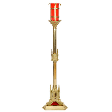 Polished Brass and Lacquered Standing Sanctuary Lamp.