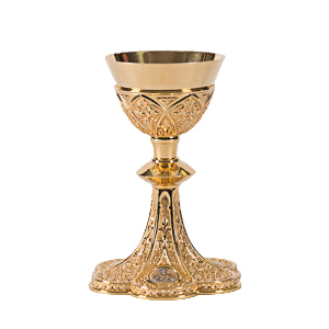 This gold-plated chalice also has a matching Ciborium. Can be commissioned as a single piece or a set. The set is also available in silver as page 70 in our catalog.